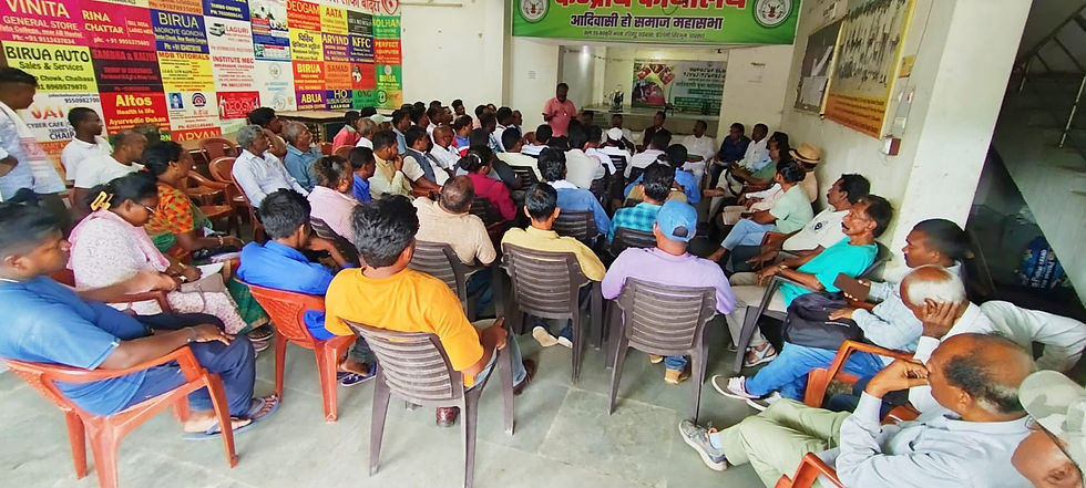 बैठक में सर्वप्रथम जेल से रिहा हुए आंदोलनकारियों को फुलमाला एवं आदिवासी पंरपरा से स्वागत किया गया. साथ ही उनसे जेल में मौजूद आंदोलनकारी साथियों की स्थिति की जानकारी ली गई. बैठक में उपस्थित लोगों ने जेएमएम प्रतिनिधियों एवं नेताओं के द्वारा भाजपा के नेताओं के पुतला दहन की कडी भर्त्सना की. आदिवासी समाज ने कहा कि जो भी व्यक्ति आदिवासी समाज के साथ खडा है आदिवासी समाज हमेशा उसके साथ खड़ा रहेगा. क्यों ना वे किसी भी पार्टी हो. क्यों कि समाज पहले बाद में पार्टी रहेगा. बैठक में उपस्थित आंदोलनकारियों ने आगे की रणनीति पर चर्चा करते हुए कहा कि सरकार को सभी आंदोलनकारियों को बिना किसी शर्त के ही केस को खत्म करते हुए जेल से रिहा करना होगा. जिसके लिए आदिवासी समाज किसी भी कदम को उठाने के लिए तैयार है.